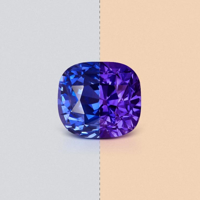 Color Change 是一种独特的宝石色,能够根据光线变化而呈现不同的色调。通常,这种色彩从温暖的红色、橙色转变为冷静的蓝色或绿色,展现出动态的视觉效果。它象征变化、神秘与魅力,常用于展现个性与高端科技感的宝石设计中。