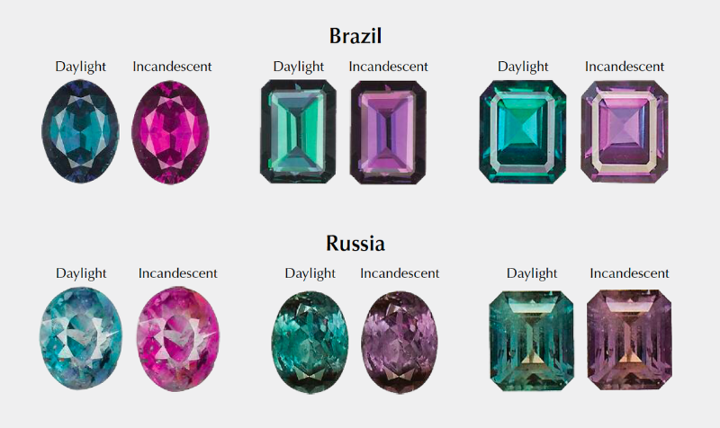 亚力山大变石最初是在1830年俄罗斯沙皇亚历山大二世的生日时,发现于乌拉尔山脉。这一发现恰好与俄罗斯的国色——绿色和红色相呼应,令这颗宝石更具象征意义。