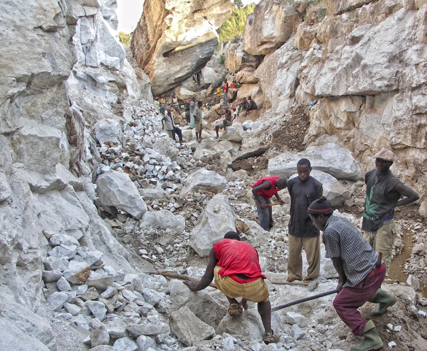 伊潘科的矿工们正在开采含尖晶石的大理石。