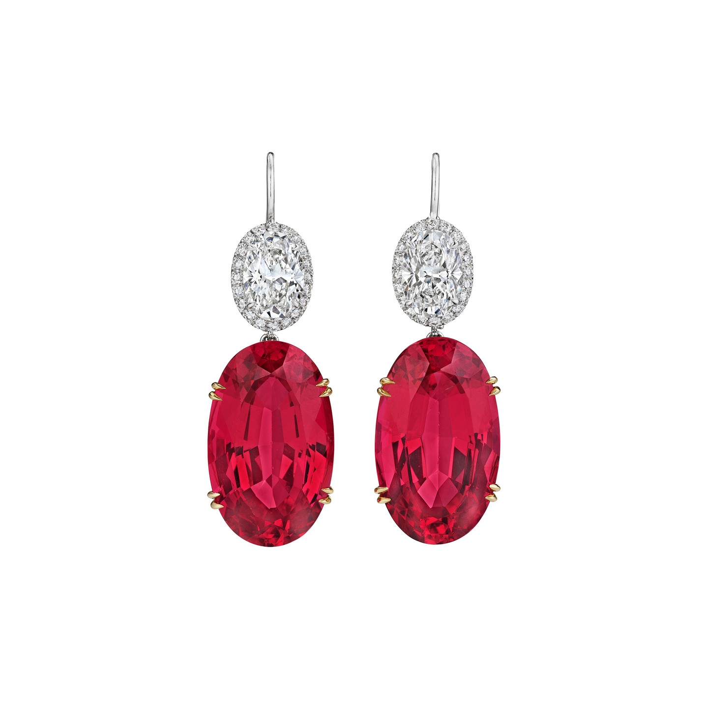 图2:哈利·温斯顿设计的尖晶石及钻石耳环,主石为坦桑尼亚马亨盖产的未加热尖晶石(22.42和21.87克拉),2024年在佳士得以约222.8万美元成交。