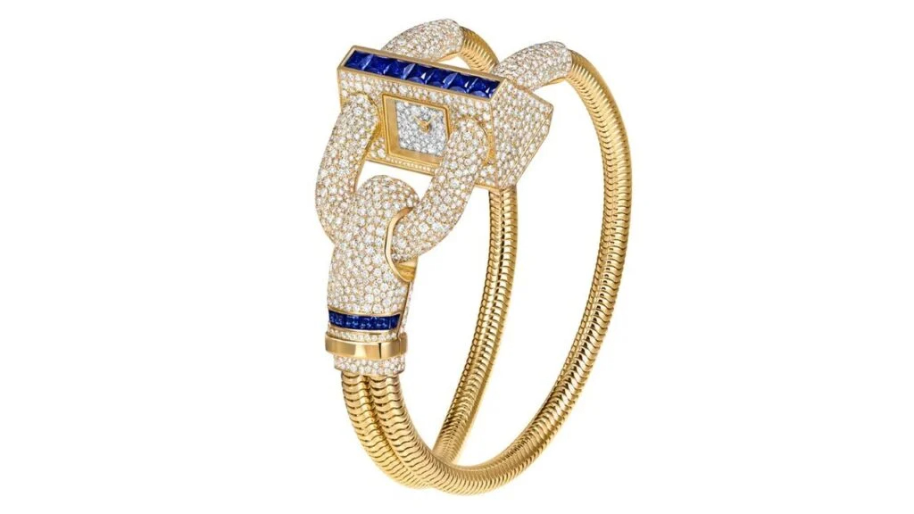 双蛇链式表带优雅地环绕手腕,延续了梵克雅宝的经典精神。