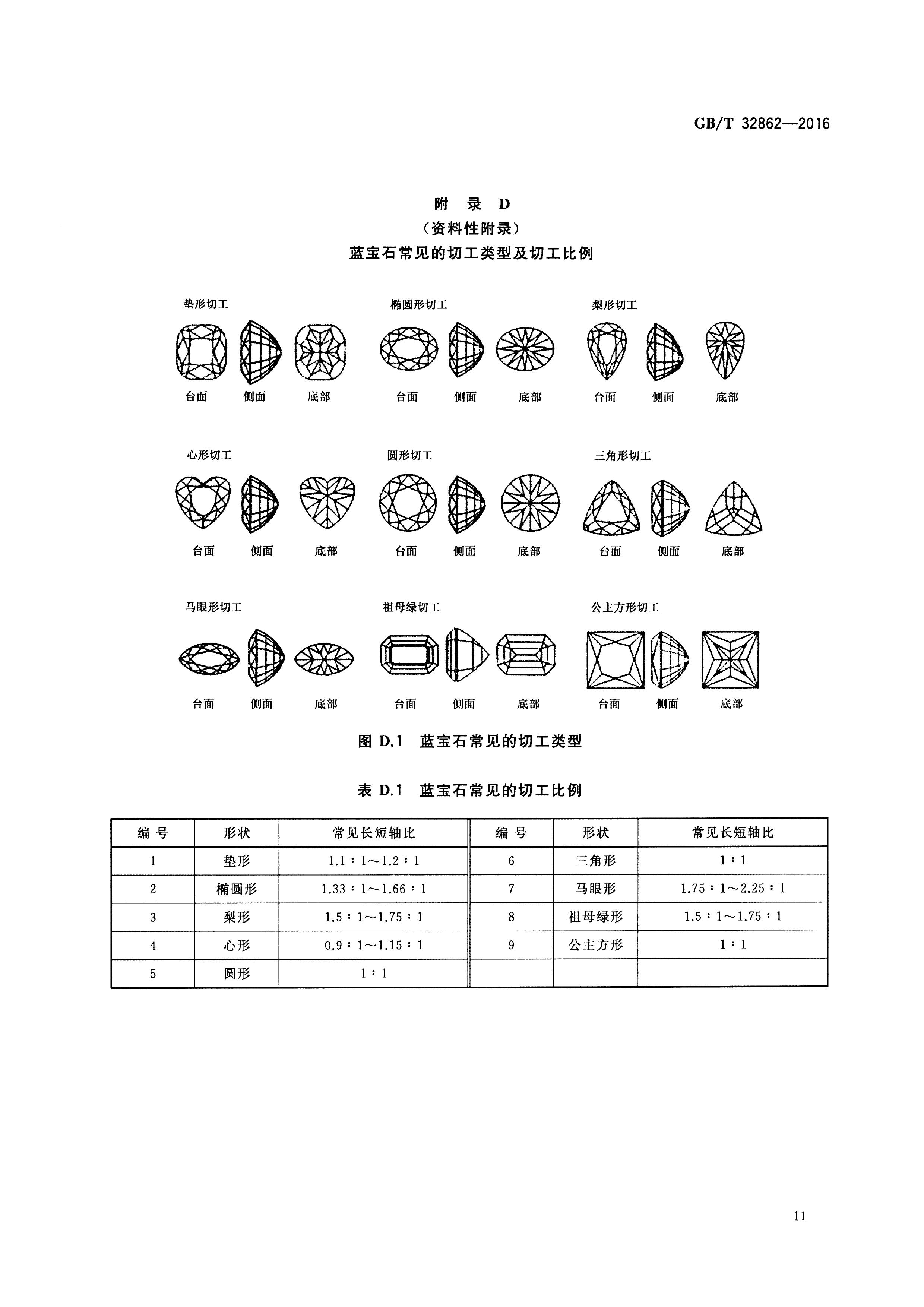 有错误的是 GB/T32862-2016 附录D中的蓝宝石常见切工类型与比例的示意图。