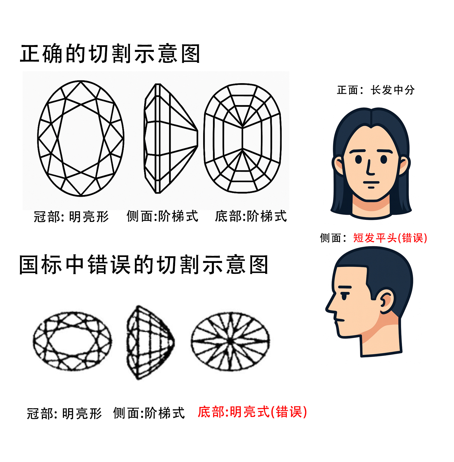 用AI画了一个示意图,错误是在底部,就好像一个正脸是长发中分,画侧面是一个短发平头。