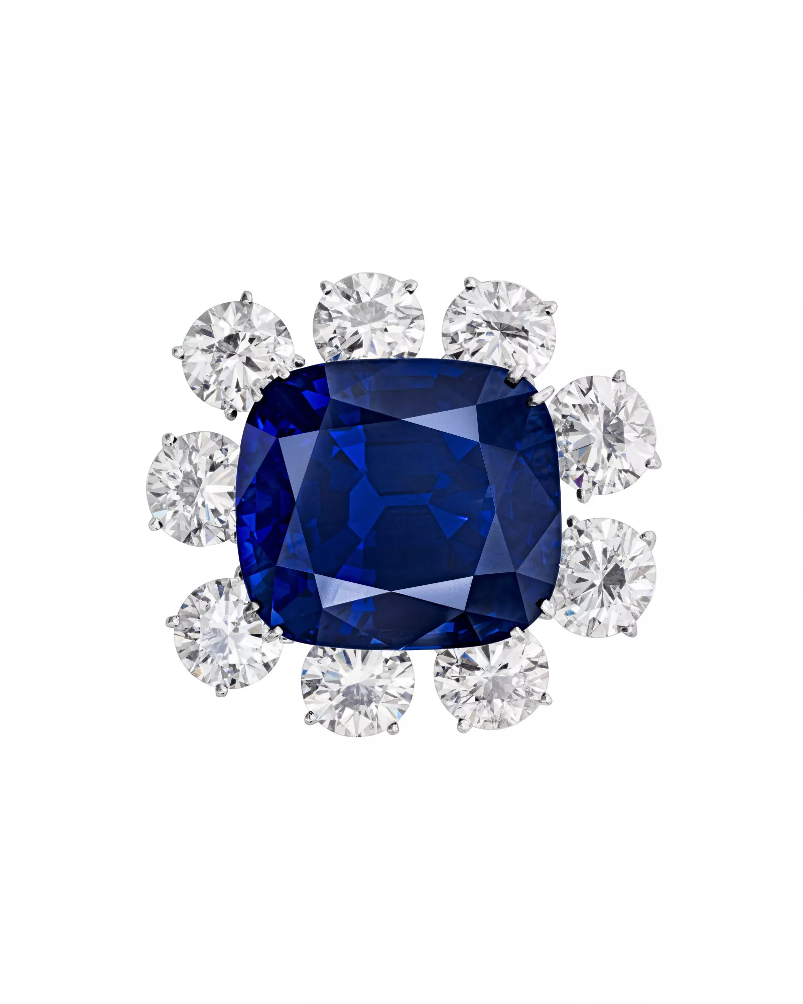 - 65.46克拉垫形未加热蓝宝石,环绕九颗无色钻石