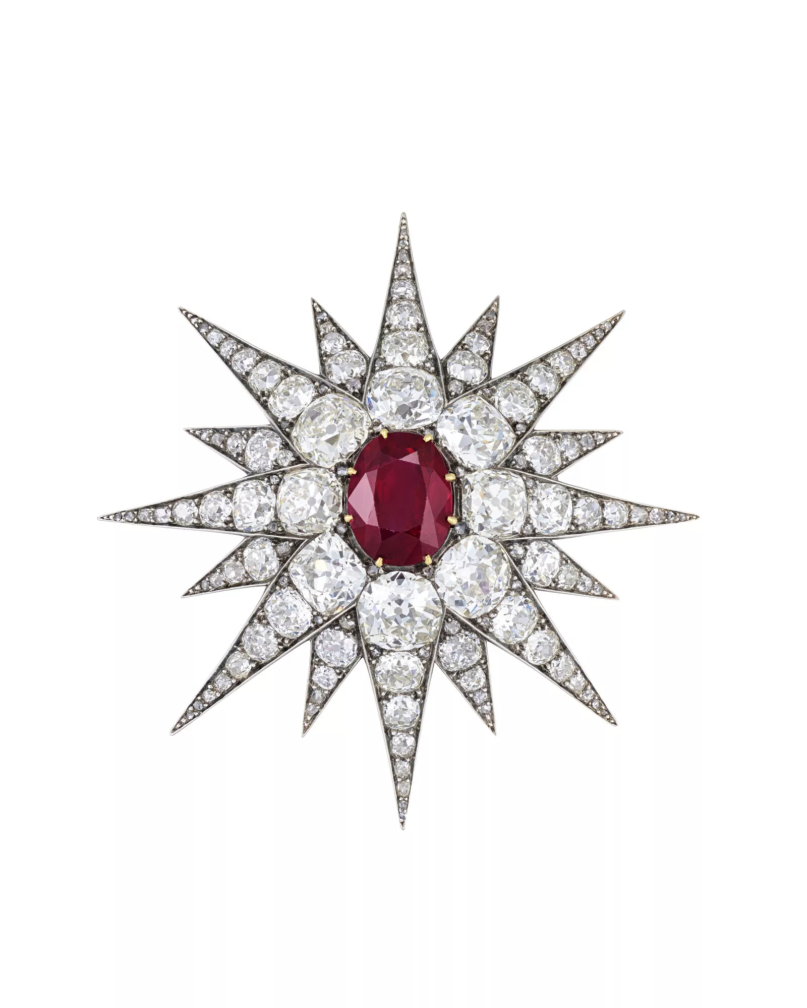 - 红宝石钻石星形胸针:伯爵夫人在1902年爱德华七世加冕典礼上佩戴,估价1,100,000-1,600,000 瑞士法郎