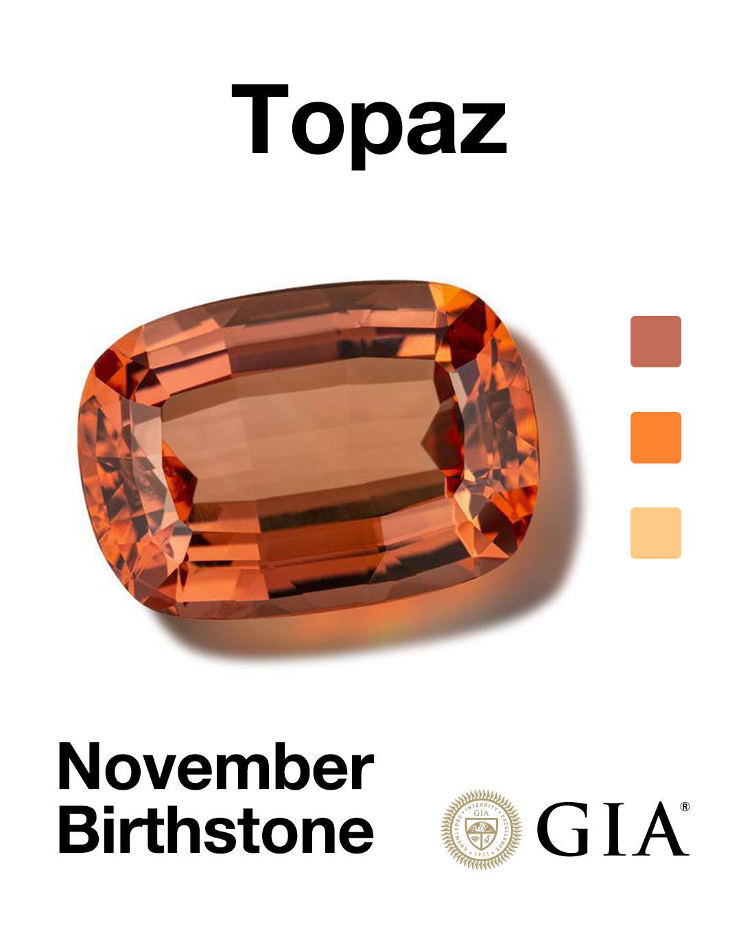 - 帝王托帕石(Imperial Topaz):粉橙—橙红—金橙的高贵色系。名称由来有两说: