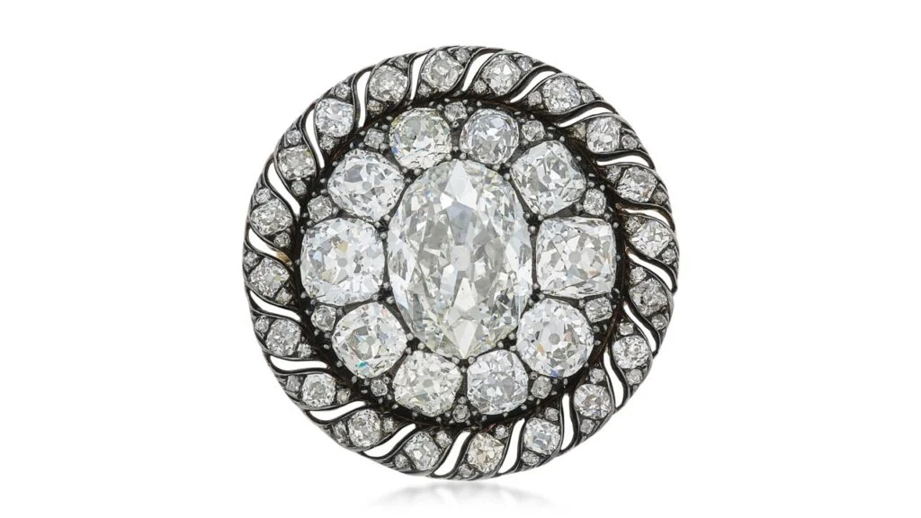 这枚可追溯至19世纪早期的胸针,主石为13.04克拉椭圆形钻石,由拿破仑·波拿巴佩戴,最终以350万瑞士法郎(约440万美元)成交,远超估价的十余倍。