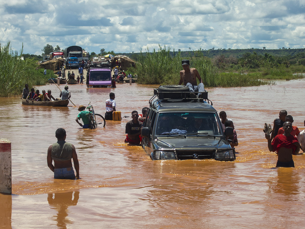 照片是1月份雨季,马达加斯加国道被洪水淹没。在马达很多矿区不要说小汽车,摩托车都开不进去,进矿区还要步行1-3天。