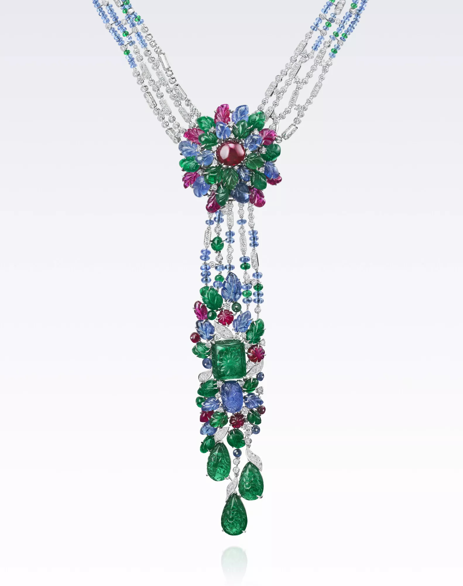 本季拍卖最耀眼的明星拍品无疑是镶嵌16颗天然克什米尔皇家蓝蓝宝石、总重104.61克拉的“皇家蓝”颈链,最终以125,450,000港元(约16,191,882美元)成交,刷新了佳士得于2018年创下的克什米尔蓝宝石项链拍卖世界纪录,成为2025年度亚洲拍卖场上成交价最高的珠宝。