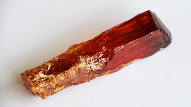 这颗成品最终尺寸为89.53 × 20.56 × 19.15毫米,重量为332.24克拉,宛如烈焰燃烧,令人惊叹。