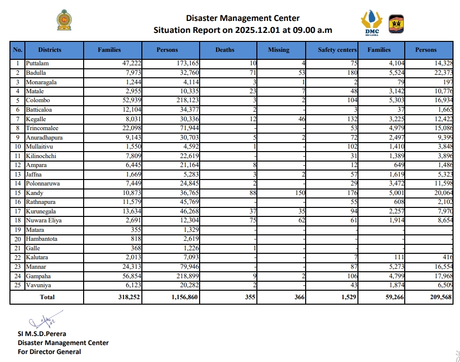 11月28日,热带气旋“迪特瓦”横扫斯里兰卡,带来暴雨和持续风暴。根据灾害管理中心(DMC)通报: