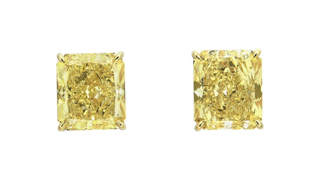 - 主石分别为5.12克拉与5.23克拉艳彩黄钻