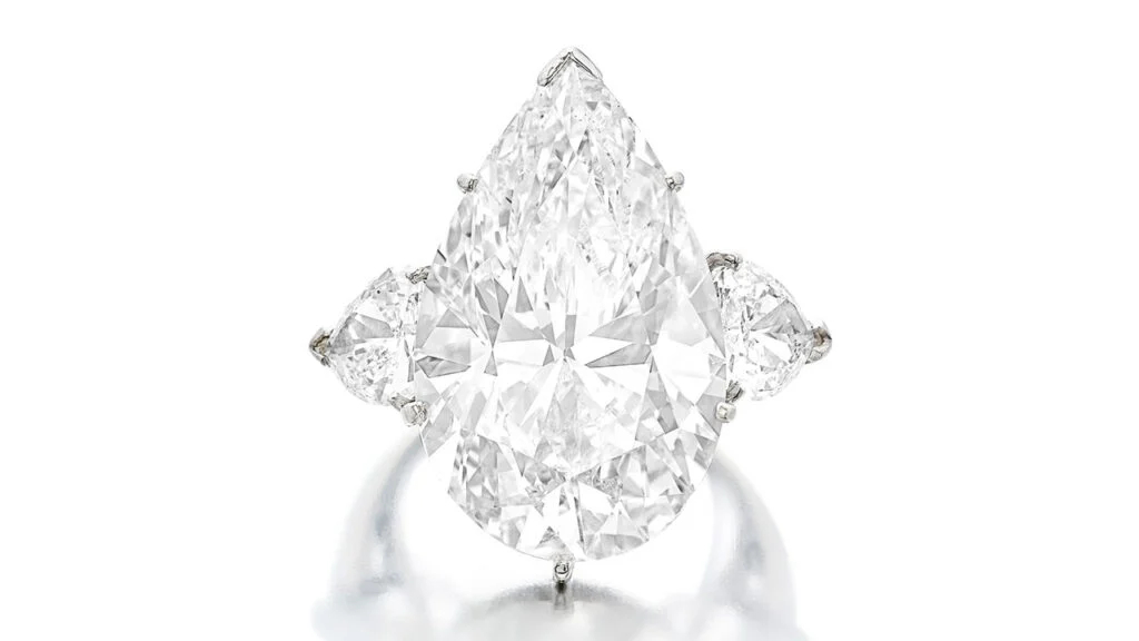 💎 来自慈善家格里·布劳尔曼收藏的19.74克拉梨形钻戒,最终成交价为57.15万美元,大幅高出35万美元预估;