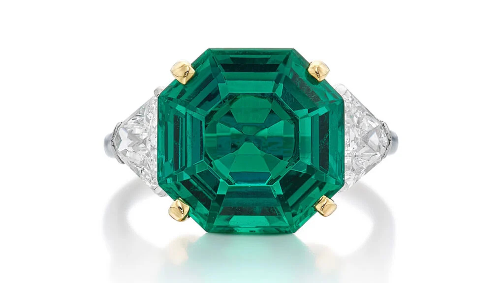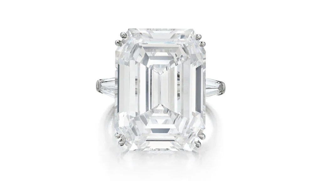 💍 Harry Winston 祖母绿切割 22.85克拉 D色钻石戒指,预估上限为150万美元,最终成交价高达200万美元;