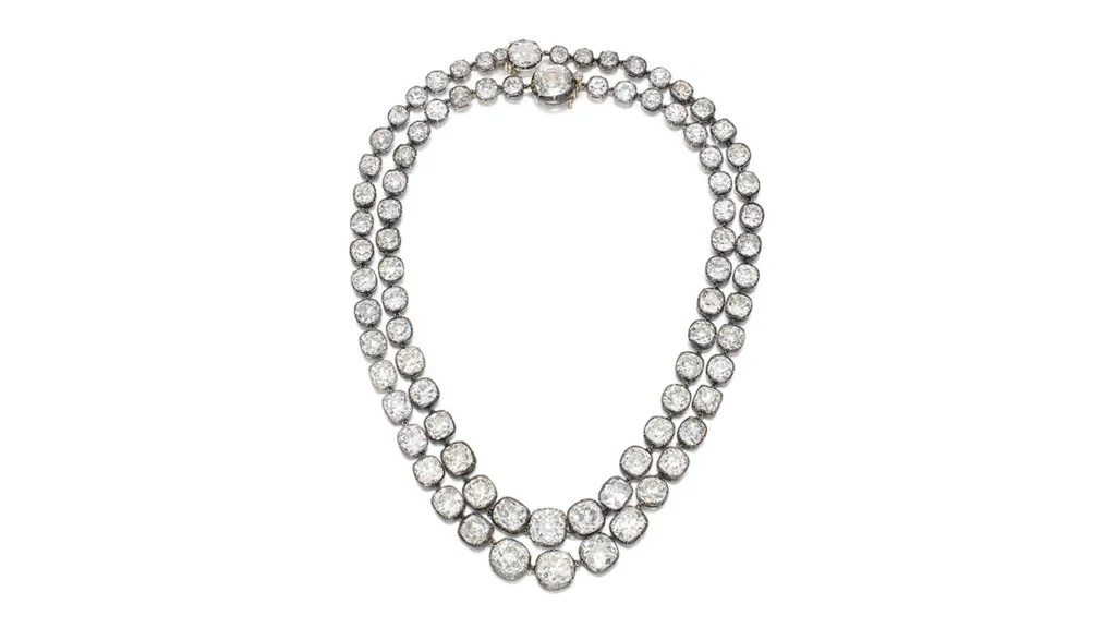 💍 两条老矿式切割钻石项链,以82.55万美元成交,超出预估值近一半。