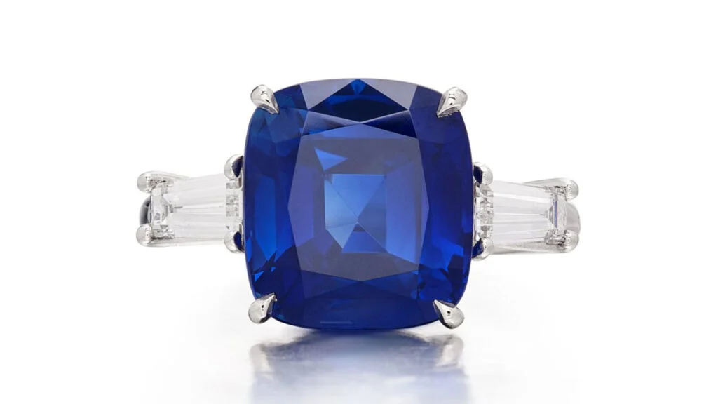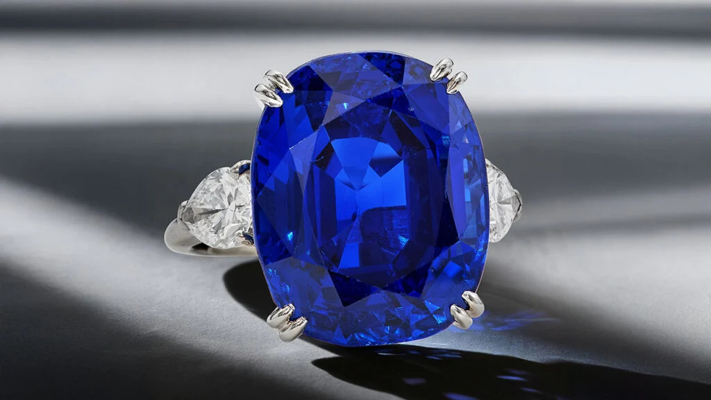 瓦伦丁·马格罗设计的克什米尔蓝宝石戒指,以53.34万美元成交,符合拍前市场预期;