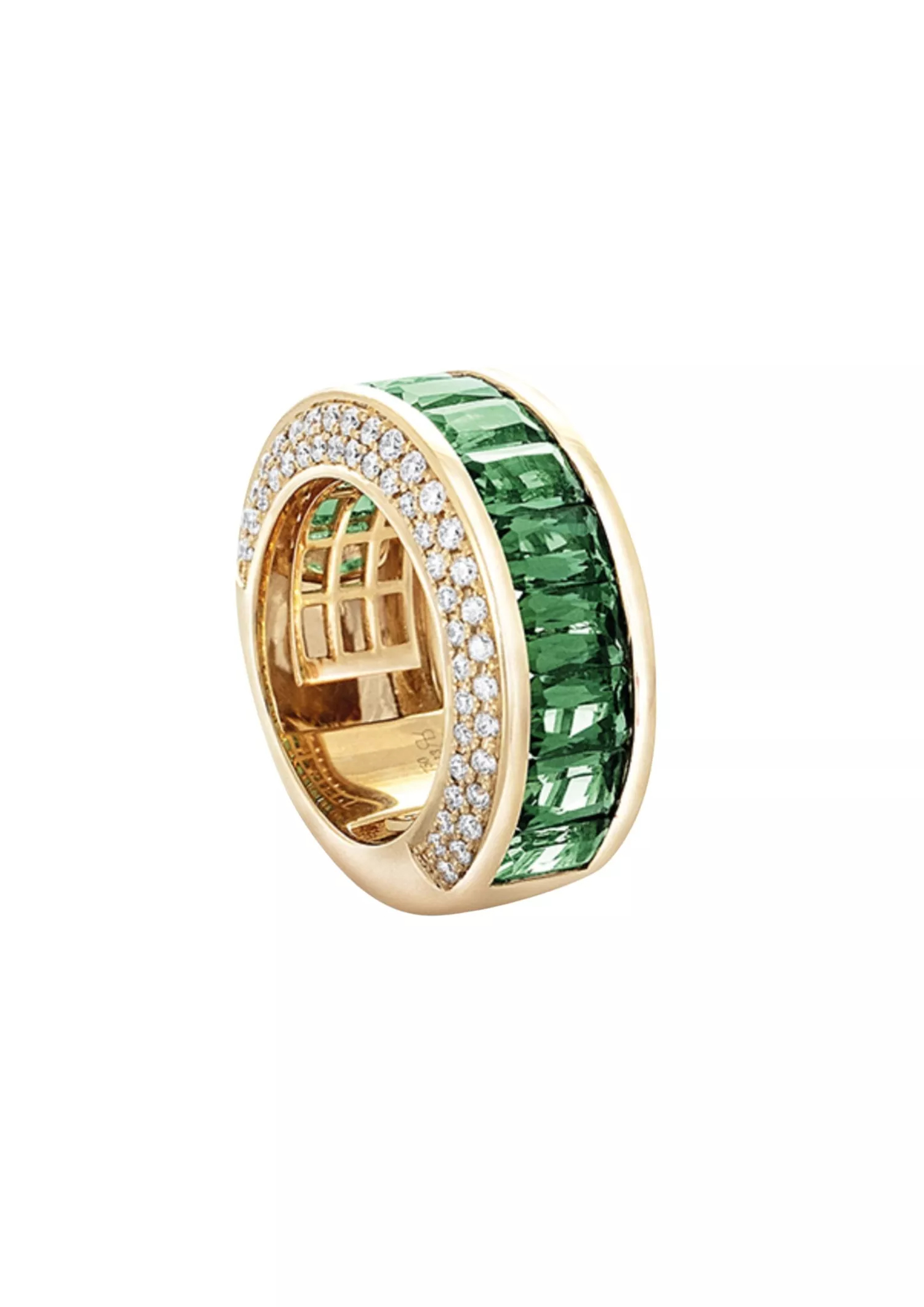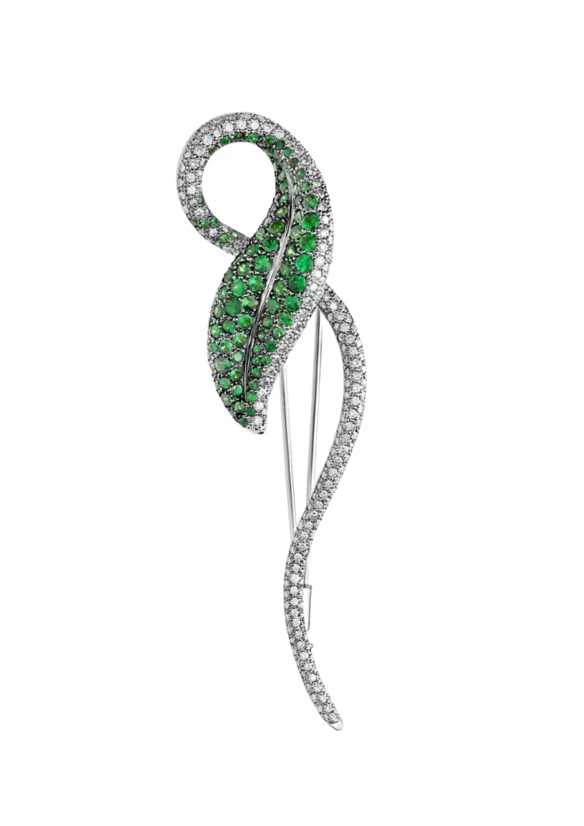 在祖母绿与碧玺之外,邦尼尔也特别提到了沙弗莱石(Tsavorite)——一种相对小众却极具吸引力的绿色宝石。沙弗莱石颜色鲜艳明亮,光泽媲美祖母绿,但价格却更加亲民,因而成为越来越多珠宝设计师的“新宠”。