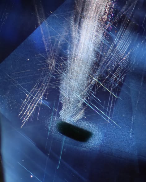 在一颗未经加热、重约5克拉的蓝宝石中,居然发现了一种罕见而优雅的自然现象——被称为“彗星尾巴”的内含物。这种奇特的内含物由微小的金红石颗粒和细长的针状晶体组成,形态宛如天际划过的彗星,在宝石内部悄然绽放。
