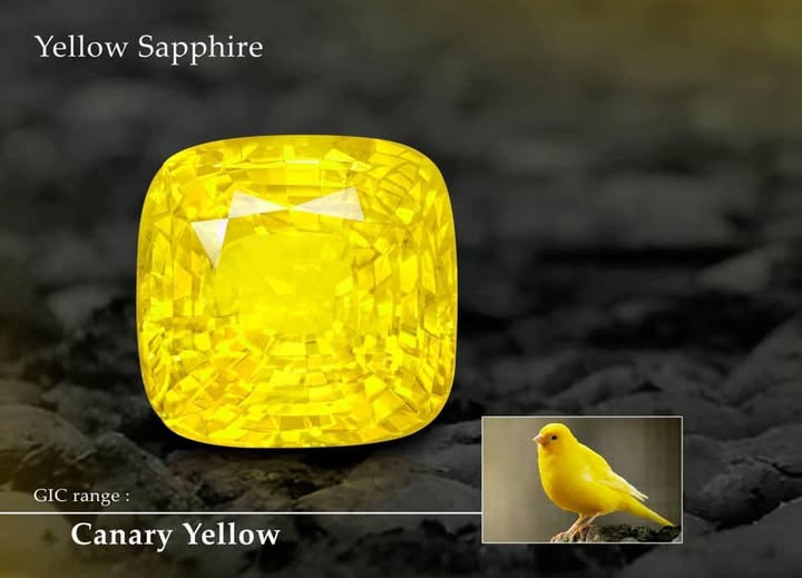 在彩色宝石市场,尤其是黄色蓝宝石、碧玺中,“金丝雀黄”常被作为商品名称或俗称,用来形容色彩极为鲜艳的纯黄色宝石。例如,斯里兰卡“Pukhraj”系列的优质黄蓝宝石中最明亮的一档就常被称为“金丝雀黄蓝宝石”。但这并非统一定义,而是商家对色彩的主观命名。瑞士SSEF介绍中明确指出,非蓝色蓝宝石均以颜色前缀命名,比如“Yellow sapphire(黄色蓝宝石)”,而非使用商业昵称。因此在彩宝证书或学术场合,通常使用“黄色蓝宝石”“黄色碧玺”等中性称谓。一般而言,仅在贸易和广告宣传资料中会看到“Canary Yellow sapphire/tourmaline”等词。