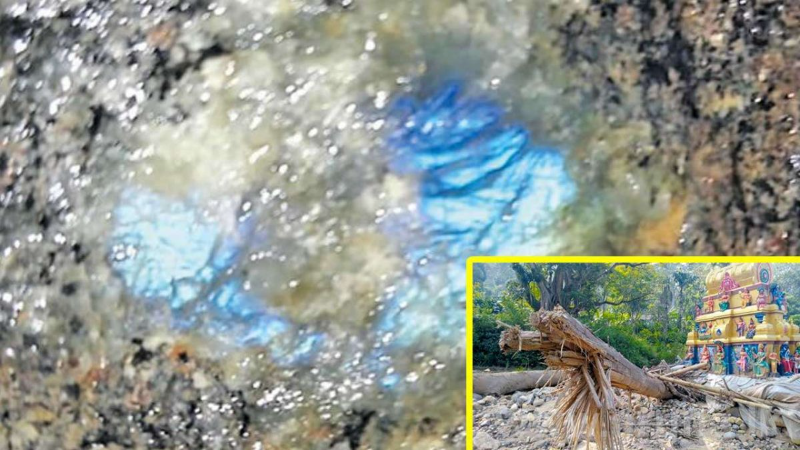 据报道,这块体积庞大、呈蓝色簇状的岩石出现在加拉哈德尔托塔瓦塔加兰滕纳下部,紧邻斯里穆图玛丽阿曼科维尔寺庙。由于其色泽鲜艳、形态特殊,当地居民怀疑这可能是一块极为珍贵的天然宝石。
