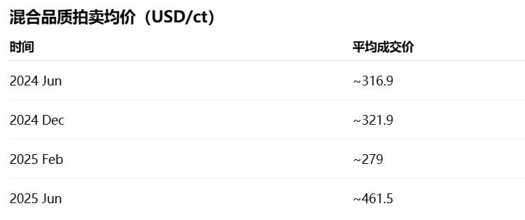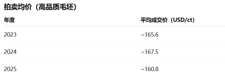 2025 年中均价突破 400 美元/ct,反映出高品质矿区资源对整体价格形成明显拉动。