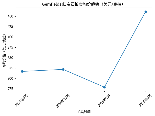 值得注意的是,Gemfields 红宝石采用ixed-quality(混合品质)拍卖机制,即高、中、低品质毛坯组合出售。因此均价会受到批次结构影响——当高端货比例增加时,均价会被显著拉高。