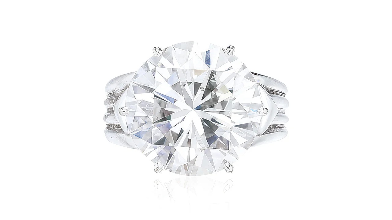 一枚7.36克拉、E色、VVS1净度的圆形明亮式切割钻石戒指,以200万港元成交,高于估价上限,显示优质大克拉白钻仍具市场吸引力。