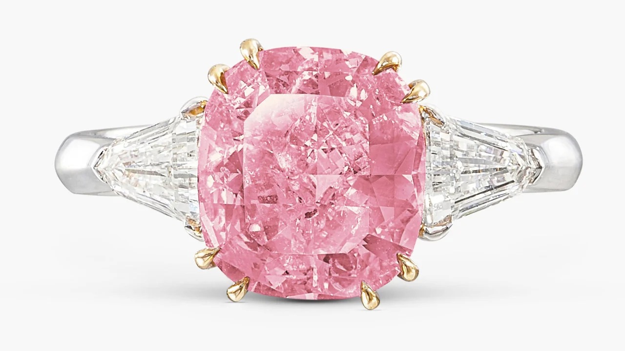 一颗2.86克拉艳彩紫粉钻戒成交580万港元,虽低于估价,但仍显示彩钻市场韧性