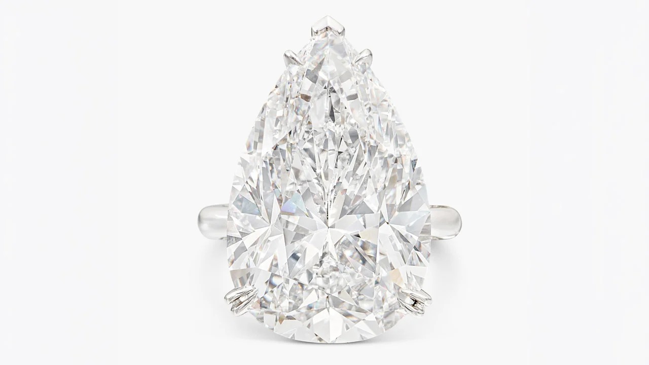 一枚18.29克拉D色内部无瑕梨形钻戒,以900万港元成交,明显高于估价区间