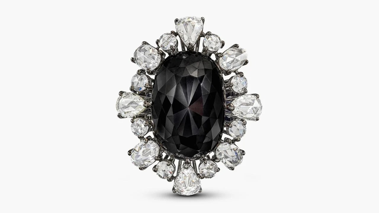 这枚戒指以一颗玫瑰式切割黑钻为主石,周围配镶梨形、圆形及椭圆形玫瑰式切割钻石。相较于传统白钻作品,黑钻在高级珠宝拍卖中的表现通常更依赖设计完整度与视觉辨识度。此次成交价明显高于估值区间,也反映出藏家对具有鲜明风格拍品的接受度正在提升。