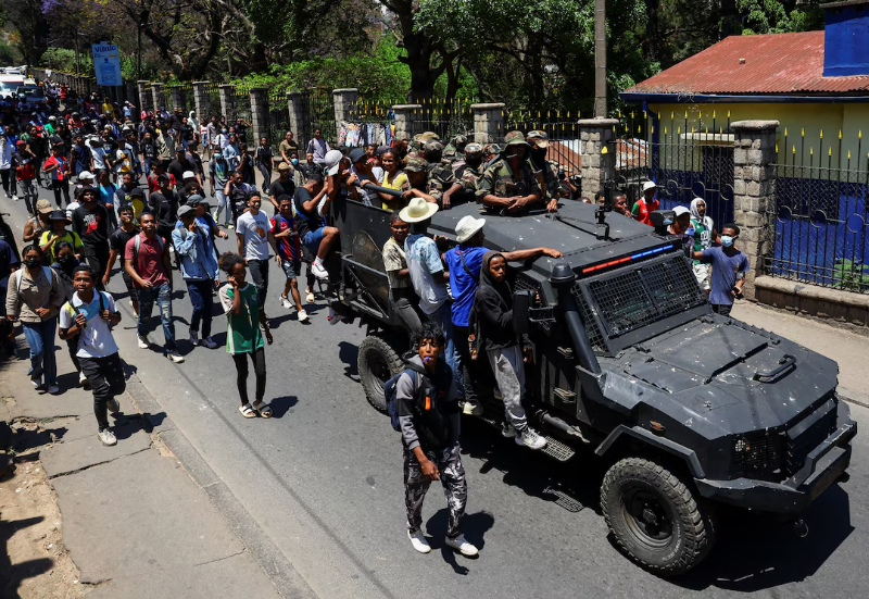 马达加斯加总统在抗议活动中军队叛变后于10月12日搭乘法国军机离开该国