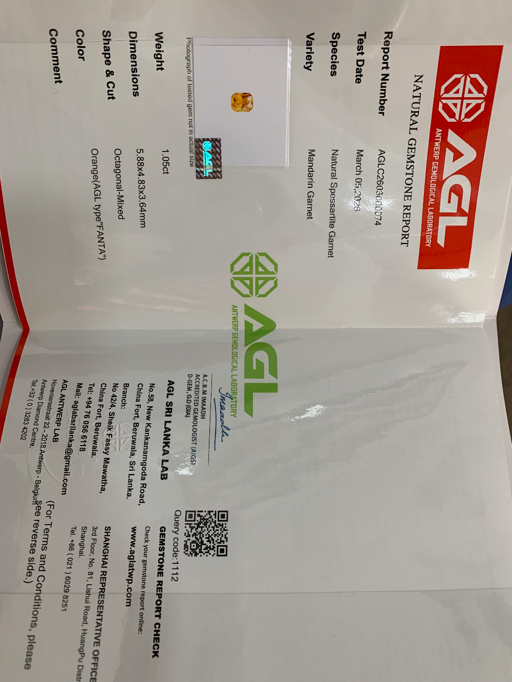 1.05克拉芬达石